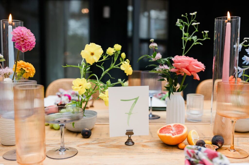I also photograph the reception space before guests arrive. This includes tables, florals, place settings, and signage.