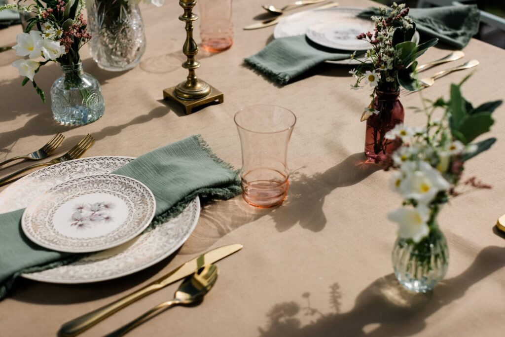 Natural textures work beautifully for garden or outdoor weddings. Clean lines and neutral materials suit a more minimal aesthetic. Heirloom pieces add depth to sentimental or family-focused days.